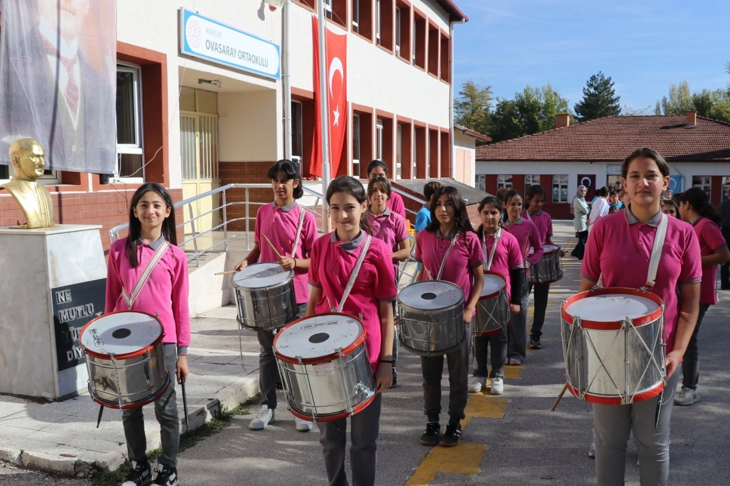 AMASYA (İGFA) - Amasya'da merkeze bağlı Ovasaray Köyü'nde ortaokul öğrencileri, 29 Ekim Cumhuriyet Bayramı'nı kutlamak için bando takımı kurmak istediklerini okul yönetimine bildirdi. Okul yönetiminin öğrencilerin isteklerini olumlu karşılaması üzerine bando takımı kurulması için çalışmalara başlanıldı.