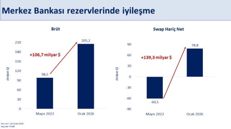 Bakan Şimşek, uluslararası standartlara göre rezerv yeterliliğinin sağlandığını vurgularken, önemli bir koşullu yükümlülük olan 143 milyar dolar tutarındaki KKM’den çıkış sürecinin başarıyla tamamlandığını kaydetti. Böylece, döviz pozisyonunda toplam 280 milyar doları aşan bir iyileşme sağlanmış oldu. Şimşek, güçlü makro finansal istikrarın risk primini düşürdüğünü ve ekonomiyi şoklara karşı daha dayanıklı hâle getirdiğini ifade etti.