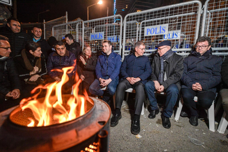 İZMİR (İGFA) - Meslek Fabrikası nöbeti, perşembe gecesi de sürdü. Sabah saatlerine kadar Meslek Fabrikası önünde nöbet tutan İzmir Büyükşehir Belediye Başkanı Dr. Cemil Tugay’a, CHP İzmir İl Başkanı Çağatay Güç, CHP Şanlıurfa Milletvekili Mahmut Tanal, CHP İzmir Milletvekili Yüksel Taşkın ile ilçe belediye başkanları da eşlik etti.