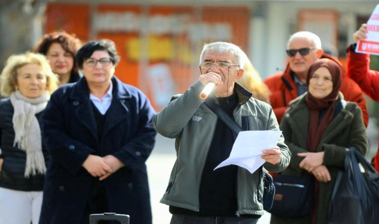 İzmir'de Karabağlar Demokrasi Platformu’nun çağrısıyla düzenlenen basın açıklamasında emekliler, artan hayat pahalılığına ve derinleşen geçim sıkıntısına karşı bir kez daha alanlara çıktı. “Gasp edilen haklarımızı geri almak için buradayız” sloganıyla yapılan açıklamaya Karabağlar Belediye Başkanı Helil Kınay da destek verdi.