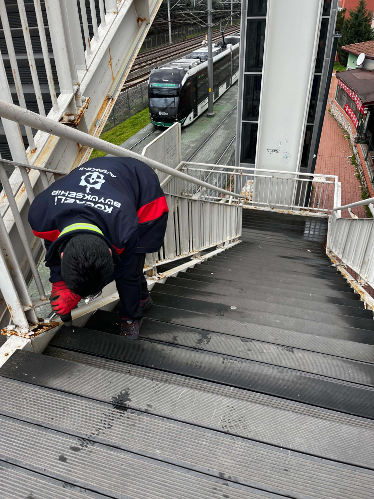 KOCAELİ (İGFA) - Kocaeli Büyükşehir Belediyesi bünyesindeki Yol ve Bakım Dairesi Başkanlığı’na bağlı Tesisler Şube Müdürlüğü ekipleri, İzmit ilçesi Eğitim Kampüsü Tramvay Durağı üstgeçidini elden geçirdi.